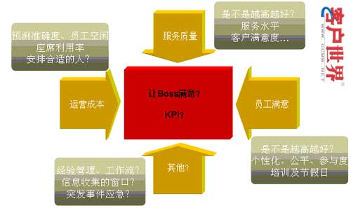 所以,我們認為呼叫中心的運營解決方案,應(yīng)該綜合協(xié)調(diào)人力資源管理、話務(wù)預(yù)測、自動排班、績效考評、話務(wù)分析、現(xiàn)場管理、實時預(yù)警等各個現(xiàn)場管理要素。各個要素之間即是相互獨立,又相互關(guān)聯(lián)的,系統(tǒng)通過設(shè)置目標值,達到管理目標的均衡,這個平衡,從最核心的體現(xiàn)來看,就是一個完整的KPI體系中各個指標的實現(xiàn)。