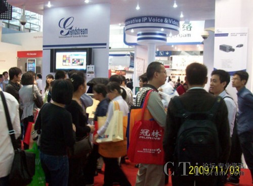 CTI論壇(ctiforum)11月11日消息(記者 潘婷):11月01-04日,2009年中國國際公共安全博覽會在深圳國際會展中心正式拉開帷幕,應(yīng)大會組委會盛情邀請,國際知名網(wǎng)絡(luò)音視頻專家Grandstream潮流網(wǎng)絡(luò)公司攜其最新的產(chǎn)品與技術(shù)全力投入了此次展會,展示了公司雄厚的科技研發(fā)實力,并取得了豐碩的參展成果。圖:潮流展臺參觀者絡(luò)繹不絕