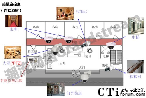 采用潮流網(wǎng)絡(luò)提供的網(wǎng)絡(luò)監(jiān)控平臺(tái)來加強(qiáng)管理和提高各個(gè)門市的服務(wù)質(zhì)量。由于是連鎖酒店,所以高層主管無法時(shí)時(shí)刻刻在各個(gè)酒店內(nèi)管理,讓高層對于酒店內(nèi)的營運(yùn)管理十分頭痛,所以當(dāng)主管在裝設(shè)監(jiān)控系統(tǒng)時(shí)要求希望達(dá)到透過Internet的集中監(jiān)控、分散管理,監(jiān)控中心的操作平臺(tái)方面希望能使用人性化的界面簡單不繁瑣。潮流網(wǎng)絡(luò)的監(jiān)控系統(tǒng)可展開樹狀目錄進(jìn)行不同地域的階層式管理,高層主管可透過網(wǎng)絡(luò)進(jìn)行“跨地域、跨網(wǎng)域”的實(shí)時(shí)監(jiān)看,隨時(shí)可掌控酒店內(nèi)的營運(yùn)狀況,無需再親自到酒店。