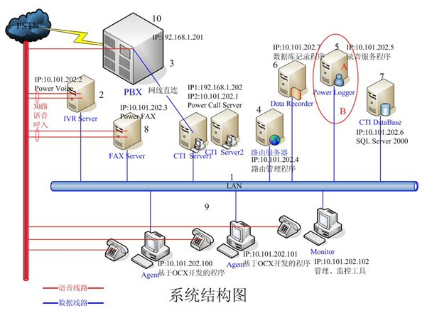 良好的網(wǎng)絡(luò)是呼叫中心良好運行的必要條件,因此PCS推薦服務(wù)器之間的連接為100M網(wǎng)絡(luò),坐席PC與服務(wù)器之間的連接為10M即可。