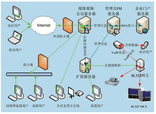視維系統(tǒng)是一個基于IP網(wǎng)絡(luò)的綜合業(yè)務(wù)通訊平臺,通過多網(wǎng)絡(luò)接入方式實現(xiàn)網(wǎng)通、電信、聯(lián)通等用戶間高速互通;通過H.323模塊將企業(yè)內(nèi)部原有的硬件設(shè)備與視維系統(tǒng)鏈接起來,有效的節(jié)約了投資;其他如SIP模塊,短信模塊,固網(wǎng)電話接入等都可以根據(jù)用戶需要進行擴展。視維系統(tǒng)可以支持分布式視頻服務(wù)器集群,可利用企業(yè)內(nèi)部網(wǎng)絡(luò)或者互聯(lián)網(wǎng)構(gòu)建超大規(guī)模企業(yè)綜合通訊平臺;凇懊嫦蚍⻊(wù)體系架構(gòu)(SOA)”設(shè)計架構(gòu),實現(xiàn)很靈活地方便地與其業(yè)務(wù)系統(tǒng)如OA,HR,CRM,