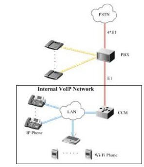 iBG3026,最后在PBX和Ubigate iBG3026之間再開通4條E1中繼,同時,Ubigate iBG3026通過自帶的GE接口接入酒店的辦公局域網(wǎng),這樣即使出現(xiàn)客房人員使用網(wǎng)絡(luò)不規(guī)范的情況發(fā)生,也不會影響語音服務(wù)的質(zhì)量。