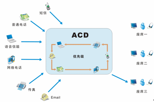 我們目前接入的媒體有很多,不再是傳統(tǒng)的單一電話(huà)接入方式,還包括網(wǎng)絡(luò)呼入、E-mail呼入,短信、留言等,所有的媒體接入都通過(guò)統(tǒng)一的排隊(duì)路由,以最優(yōu)化的策略分配給最適合的座席人員;并且,不同的媒體類(lèi)型具有不同的優(yōu)先級(jí),ACD(自動(dòng)話(huà)務(wù)分配)根據(jù)優(yōu)先級(jí)和設(shè)定的排隊(duì)算法,自動(dòng)實(shí)現(xiàn)媒體的統(tǒng)一智能路由。