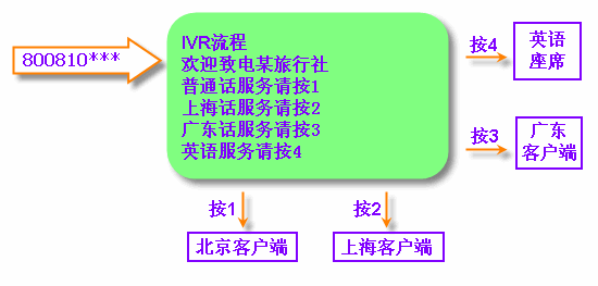 當(dāng)客戶(hù)撥打電話(huà)進(jìn)入MVB2000系統(tǒng)平臺(tái)的呼叫中心。通過(guò)IVR導(dǎo)航,可隨意打到各地的客戶(hù)端,再通過(guò)客戶(hù)端進(jìn)行更加細(xì)致的分類(lèi)。并且,每個(gè)客戶(hù)端都可以互相轉(zhuǎn)接。IVR流程可以無(wú)限下拉菜單。