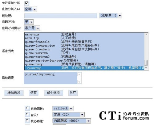 對于故意搗亂、騷擾的電話可以列為“黑名單號碼”,凡這個號碼呼入總是顯示忙音。對于重要的VIP客戶可以列入“白名單號碼”,凡這個號碼呼入即可直通設(shè)定的分機(jī),而無須經(jīng)過IVR語音導(dǎo)航,以節(jié)省對方時間。