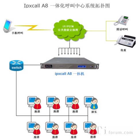 ipxcall A8呼叫中心融合IP-PBX和傳統(tǒng)呼叫中心功能于一體,采用先進的計算機電話集成技術(shù),結(jié)合客戶的當前業(yè)務(wù)和未來業(yè)務(wù)發(fā)展的實際情況,協(xié)助用戶快速建立一個功能全、易使用、易維護的一體化呼叫中心。