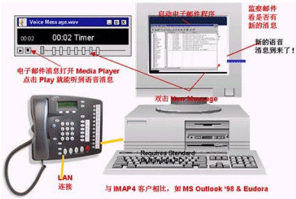 在傳統(tǒng)的公司中,存在著三種獨立的消息系統(tǒng):聲音、傳真、電子郵箱。由于它們彼此是獨立的,需要不同的網絡支持、多個終端以及多個號碼,在發(fā)送和獲取不同類型的消息時不方便,也帶來了昂貴的費用。隨著人們對消息的需求越來越大,并且人們工作的流動性和移動性越來越強,過多的通訊工具和手段給他們獲取信息帶來了不便;同時,太多的通訊手段使人們在攜帶上、記憶上和使用上帶來了很多不便。