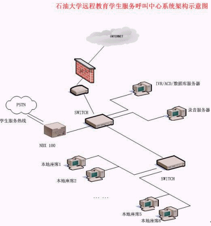 石油大學遠程教育學生服務呼叫中心系統(tǒng)架構示意圖
