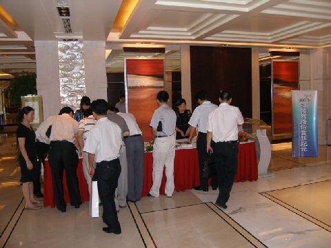 。。在茶歇期間,3Com的產(chǎn)品經(jīng)理朱海翔先生、技術(shù)顧問黃海濤先生及NBX中國代理北京網(wǎng)音的銷售代表和與會的朋友們進(jìn)行了熱烈的交流,與會的朋友們對NBX通訊產(chǎn)品均表示出極大的關(guān)注與濃厚的興趣,爭相與現(xiàn)場做演示NBX通訊系統(tǒng)進(jìn)行零距離的"親密接觸",感受網(wǎng)絡(luò)電話帶來的魅力。大家所提出的問題也涵蓋了從話機(jī)功能到如何實(shí)現(xiàn)異地互聯(lián)等諸多實(shí)際功能,在獲得詳實(shí)答案后,對NBX通訊產(chǎn)品充滿了信心。此時此刻,香格里拉大酒店的宴會廳里,談?wù)揘BX的聲音充滿了每一個角落。