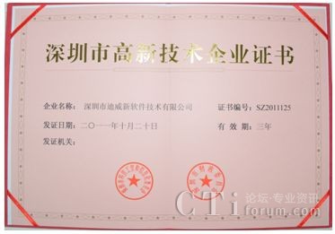 迪威通過“深圳市高新技術企業(yè)認定”