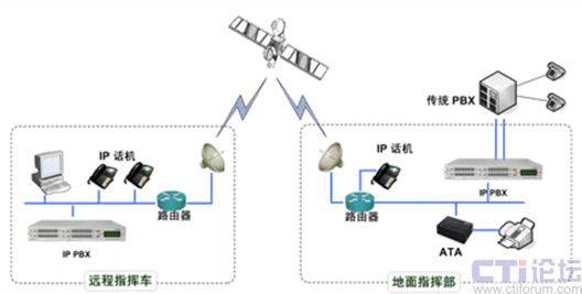 在有關(guān)部隊的應用案例中,有兩方面比較常見,應用也比較廣泛。首先是借助衛(wèi)星的遠程指揮通訊,我們?yōu)榈孛鏅C關(guān)與遠程指揮車之間架設起溝通的橋梁,除了電話、傳真等基本業(yè)務,還通過IP-PBX系統(tǒng)提供了多方會議、語音留言、熱線電話等擴展業(yè)務,在即使是雙星四跳的高延時環(huán)境下建立起穩(wěn)定的語音通信,保障了部隊指揮的有效下達。