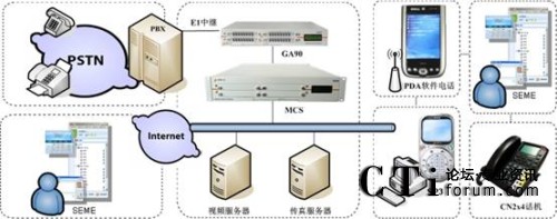 3)連接視頻服務器、傳真服務器提供視頻會議及無紙化傳真服務。
