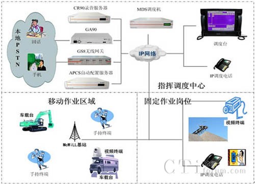 MDS系統(tǒng)可以應用于各種作業(yè)現(xiàn)場的指揮調(diào)度, MDS系統(tǒng)不但支持系統(tǒng)基本的語音通信,調(diào)度中心可以通過視頻、數(shù)據(jù)、文本消息等綜合的多媒體方式與作業(yè)人員進行通信交互,滿足各種復雜環(huán)境下的指揮調(diào)度需求。系統(tǒng)可以通過GS8無線網(wǎng)關、GA90 E1/T1網(wǎng)關等設備實現(xiàn)與PSTN網(wǎng)絡的互聯(lián),滿足與手機和固話網(wǎng)絡用戶接入需要。豐富的終端類型可以滿足用戶對固定崗位、移動人員及車輛設備等不同環(huán)境的使用需求,根據(jù)人員崗位工作性質(zhì)可以配置IP調(diào)度話機、手持終端和車載臺等終端。