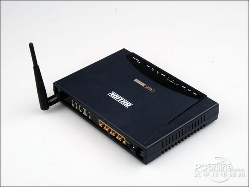 BiPAC 6404VGP外觀看上去與一臺普通的無線路由器沒多大區(qū)別,由于是面向企業(yè)級用戶,所以外型設(shè)計比較沉穩(wěn)。整機深藍色,在無線路由器的正上方鮮明的標(biāo)注出它同時還是一臺VoIP語音網(wǎng)關(guān)。