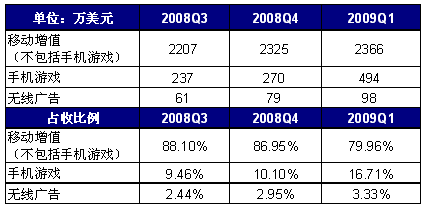 2009第1季度空中網(wǎng)總營收2960萬美元 手機(jī)游戲占16.71%