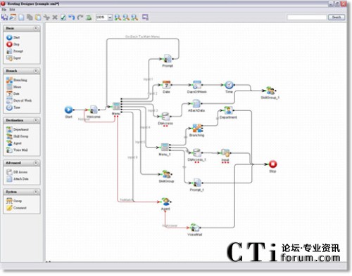 透過此組件, 使用者可以定制符合企業(yè)需求的 IVR 語音菜單, 設(shè)計IVR流程,其中包含基本組件、路由組件、目的組件、進階組件;提供組織流程、交互語音、以及設(shè)定路由等相關(guān)功能.