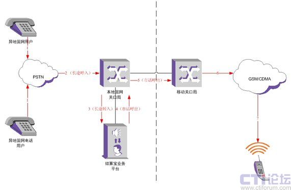 該業(yè)務(wù)爭對固網(wǎng)運行商跟移動運行商之間網(wǎng)間結(jié)算而運營,現(xiàn)在固網(wǎng)運行商跟移動運行商之間的網(wǎng)間結(jié)算只結(jié)算長途話務(wù),而市話不結(jié)算,而結(jié)算寶業(yè)務(wù)通過攔截長途呼叫,將長途呼叫變?yōu)楸镜睾艚,從而降低運營商的結(jié)算費用,變相實現(xiàn)業(yè)務(wù)的盈利。