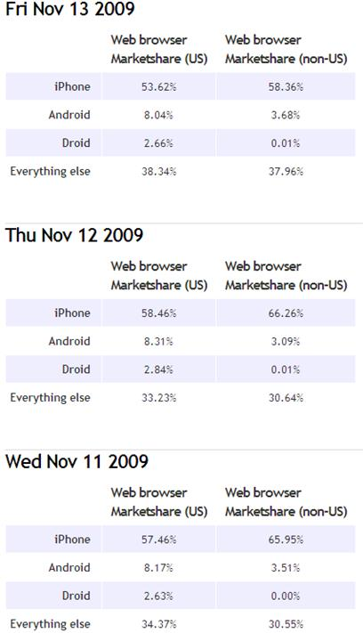 首款A(yù)ndroid 2.0智能手機(jī)摩托羅拉Droid在美國上市剛剛一個(gè)星期,不過這款CDMA手機(jī)贏得了極大的歡迎,其銷量很快就超過了同時(shí)發(fā)布的HTC Droid Eris。根據(jù)11月12日的統(tǒng)計(jì)數(shù)據(jù),摩托羅拉Droid已經(jīng)占據(jù)了美國全部移動(dòng)網(wǎng)絡(luò)流量的2.84%。網(wǎng)絡(luò)流量統(tǒng)計(jì)數(shù)據(jù)