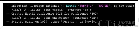 分別撥通八部電話到電話會(huì)議,這里撥打121,然后系統(tǒng)提示密碼,這里輸入123456,最后系統(tǒng)提示輸入會(huì)議房間號(hào),這里是900。成功撥入后,如果你是第一個(gè)進(jìn)入會(huì)議的人,系統(tǒng)會(huì)提示你是第一個(gè)人,然后播放音樂,直到下一位人到來(lái),音樂停止。接下來(lái)的人成功撥入會(huì)議后,會(huì)聽到一小段系統(tǒng)音樂,然后聽到會(huì)議。