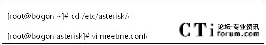 3.下面我們需要在meetme.conf這個(gè)文件中添加會(huì)議房間號(hào)