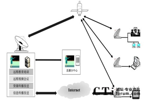 衛(wèi)星通信系統能實現組播、多點傳送和多媒體通信,支持多種媒體內容的高速寬帶傳輸,時單向、雙向交互式的現代遠程教育培訓,音視頻節(jié)目的實時播出和傳送,多媒體培訓資源和數據的推送,音視頻、數據同步交互的遠程視頻會議,信息資源的傳播和發(fā)送。