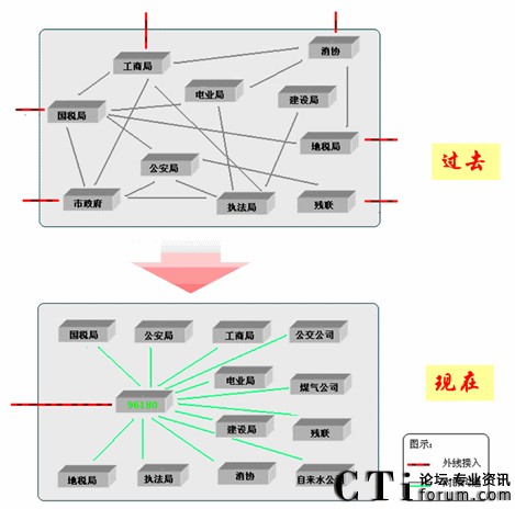 政府服務(wù)熱線以呼叫中心結(jié)合門戶網(wǎng)站和業(yè)務(wù)流程整合,創(chuàng)新了電子政務(wù)應(yīng)用模式,將傳統(tǒng)的電話服務(wù)和網(wǎng)站信息管理及協(xié)同辦公工作流程技術(shù)等結(jié)合,建立了統(tǒng)一的面向公眾服務(wù)的綜合性服務(wù)平”,實(shí)現(xiàn)“一站式”服務(wù),完全符合電子政務(wù)的信息化框架。