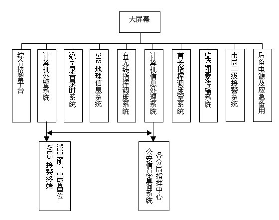 本次建設(shè)需要采用綜合通信技術(shù),將110、119、122系統(tǒng)的計(jì)算機(jī)網(wǎng)絡(luò)和有、無(wú)線(xiàn)通信網(wǎng)有機(jī)互聯(lián),建成集接處警信息獲取、統(tǒng)計(jì)、查詢(xún)、發(fā)布于一體,并通過(guò)地理信息和多媒體大屏幕顯示等輔助系統(tǒng)的綜合指揮調(diào)度,實(shí)現(xiàn)110、119、122快速反應(yīng)、信息共享的目的。為此,各系統(tǒng)應(yīng)分別具有下述功能:
