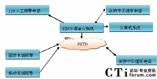 火警電話匯接至調(diào)度程控交換機(jī),將火警電話通過(guò)CTI服務(wù)器提取主叫號(hào)碼并傳送到火警受理工作站。