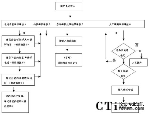 - 采用動態(tài)語音菜單,根據(jù)業(yè)務(wù)范圍將信息分類。在語音播放過程中,可按某一鍵回主語音菜單。