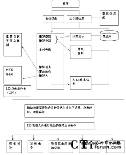 為了能夠?qū)?20報警尤其是突發(fā)事件迅速地作出正確的決策,要求受理指揮人員必須掌握大量的背景知識,其中包括城區(qū)地理、交通、急救措施、人員部署等方面的知識,因此必須有強有力的計算機輔助決策系統(tǒng)作后盾,才能使指揮人員從容地應(yīng)付各種突如其來的事故,并在受理、調(diào)度、指揮等各個環(huán)節(jié)都能提供精確、詳實的信息或數(shù)據(jù),并可幫助他們快速地將相關(guān)信息組織起來生成命令下達。