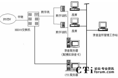 本系統(tǒng)物理結(jié)構(gòu)HXD09交換機、CTI服務(wù)器、IVR(交互式語音應答)/IFR(交互式傳真應答)服務(wù)器、統(tǒng)計維護管理工作站、數(shù)據(jù)庫/應用服務(wù)器、錄音工作站、網(wǎng)絡(luò)系統(tǒng)等構(gòu)成。