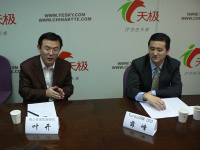 主持人:剖析行業(yè)發(fā)展趨勢,體察企業(yè)e化需求,各位網(wǎng)友下午好,感謝大家關(guān)注本期的e領(lǐng)袖對話。自2002年開始,CRM在中國取得了快速的發(fā)展,但在人們欣慰的同時(shí)還有一個(gè)現(xiàn)實(shí)讓CRM的概念可能人盡皆知,但CRM的理念卻遠(yuǎn)沒有深入人心。另外,最近一頓時(shí)間,在領(lǐng)域內(nèi)舉足輕重人物的言行以及一些知名CRM企業(yè)的變數(shù),讓人們對CRM的未來有了各種各樣的猜測和顧慮。那么CRM到底會有一個(gè)什么樣的未來,CRM為會帶給中國的企業(yè)用戶一個(gè)什么樣的未來,今天我們對話請到的是在CRM領(lǐng)域相當(dāng)資深的兩位嘉賓,看看他們會給我們一個(gè)什么樣的答案。今天這個(gè)話題引起了網(wǎng)友濃厚的興趣,在進(jìn)來之前很多網(wǎng)友已經(jīng)提出了問題,今天會把網(wǎng)友的問題結(jié)合我們話題一起進(jìn)行,請大家隨時(shí)關(guān)注,首先介紹一下今天來到對話的兩位嘉賓。一位是TurboCRMCEO薛峰。這位是獨(dú)立咨詢實(shí)施顧問葉開老師。首先歡迎兩位到來,今天話題可能跟之前不同,之前會了我們話題,隨后結(jié)合我們網(wǎng)友問題來聊。但是今天網(wǎng)友的問題和今天的主題比較切合,所以就網(wǎng)友問題和我們話題結(jié)合起來進(jìn)行,今天把首發(fā)交給網(wǎng)友,Turbo算是國內(nèi)最大的嗎?先請葉老師回答一下。