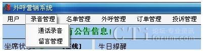 有錄音、監(jiān)聽、發(fā)送傳真、接收傳真、語音識別(ASR)等功能,處理話路與人工坐席的連接、來話轉移、保留、坐席呼出等功能,用戶與人工坐席的通話過程可實現(xiàn)全程錄音。