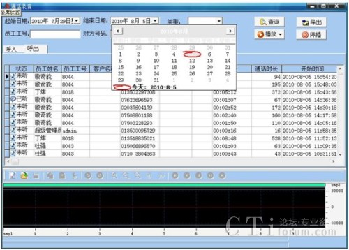 通過電話錄音監(jiān)聽系統(tǒng),對所有來話進行全程錄音,從而達到質量監(jiān)督和防范糾紛的功能,并可以通過錄音系統(tǒng)讓優(yōu)秀服務代表的錄音實例成為案例學習的典范,同時,通過錄音系統(tǒng),還可實時監(jiān)聽服務代表的通話。