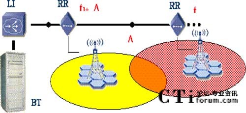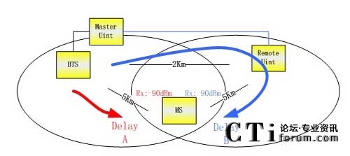 需要考慮GRRU站時延的引入對系統(tǒng)造成的影響。可能存在覆蓋區(qū)與施主扇區(qū)覆蓋區(qū)重疊的可能,如果兩重疊信號時延差小于4TA則不會造成任何問題,這是GSM規(guī)范規(guī)定的。當(dāng)兩信號時延差大于4TA且信號強度相當(dāng)(差值小于10dB)則將導(dǎo)致手機掉話;因此,這時需要考慮選取背向光纖直放站覆蓋區(qū)的施主扇區(qū),這樣基站重疊區(qū)和直放站重疊區(qū)就不會產(chǎn)生多徑引起的掉話了,而是兩個扇區(qū)信號的切換。