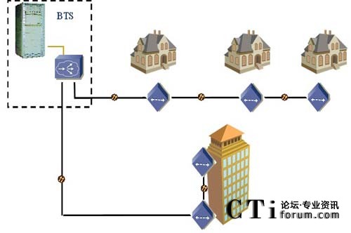 該類型覆蓋區(qū)域建筑物密集,分布不規(guī)則,烽火科技XRRU系列產(chǎn)品支持環(huán)形、鏈型及混合型組網(wǎng)方式。