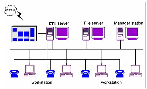 在實(shí)際工作中將CTI服務(wù)器、管理工作站、文件服務(wù)器、坐席工作站集中于一臺微機(jī)處理。