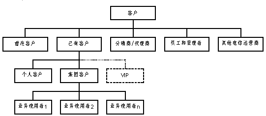 同時,客戶服務(wù)中心的服務(wù)對象進(jìn)一步擴大,按照是否已經(jīng)使用該電信運營商提供的電信業(yè)務(wù)將客戶劃分為:潛在客戶、已有客戶。這里的潛在客戶并不針對某一具體的電信業(yè)務(wù),而是針對電信運營商整體而言。其中,已有客戶又分為個人客戶和集團客戶。集團客戶內(nèi)部存在多個業(yè)務(wù)使用者,這些業(yè)務(wù)使用者本身也是客服系統(tǒng)的客戶。分銷/代理商代為發(fā)展電信運營商的客戶,同時他們也可以單獨作為一種特殊客戶享有客服系統(tǒng)提供的服務(wù)。在個人客戶和集團客戶中,均會有一部分成為特殊的VIP。此外,對客服系統(tǒng)來說,電信運營商的員工和管理者也是"客戶";同時,從網(wǎng)間互聯(lián)和網(wǎng)間結(jié)算的角度,其它運營商也應(yīng)該按照客戶來對待。