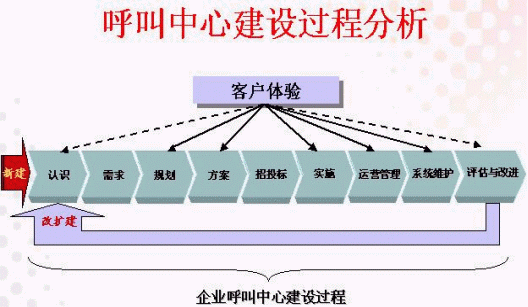 對企業(yè)新建或改擴建呼叫中心的過程分析后,大致可歸納為如下圖所示: