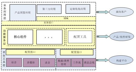 功能服務(wù)層是軟件研發(fā)的重點(diǎn),它在基礎(chǔ)技術(shù)平臺(tái)之上形成一個(gè)個(gè)核心組件,構(gòu)成應(yīng)用軟件產(chǎn)品的核心內(nèi)容,相對(duì)于直接面向客戶的應(yīng)用層來(lái)講,為二級(jí)層面,也可以理解為內(nèi)部組件,提供服務(wù)管理、配置管理,并提供全面的呼叫中心系統(tǒng)功能,完成“以客戶為中心”的服務(wù)請(qǐng)求->基本業(yè)務(wù)->客戶資料管理->主動(dòng)服務(wù)的閉環(huán)全過(guò)程,這個(gè)層面體現(xiàn)了軟件開發(fā)商的專業(yè)性。
