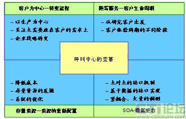 服務(wù)型呼叫中心的未來發(fā)展道路必須與企業(yè)的目標(biāo)相結(jié)合,圍繞如何幫助企業(yè)創(chuàng)造客戶和留住客戶的核心目標(biāo),進(jìn)行呼叫中心的理念變革和流程變革,作者在《服務(wù)型呼叫中心的未來之路》一文中已經(jīng)對(duì)服務(wù)型呼叫中心的未來發(fā)展方向進(jìn)行了初步的探討。但如何將客戶導(dǎo)向的理念融入到呼叫中心的運(yùn)營(yíng)中,如何重新設(shè)計(jì)客戶的接觸流程,依然是擺在呼叫中心運(yùn)營(yíng)管理者面前的艱巨任務(wù)。為了便于表述,下文中提到的呼叫中心都是指服務(wù)型的呼叫中心。圖1 呼叫中心的變革