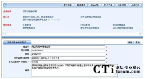 要實現(xiàn)此目的,IT支撐系統(tǒng)將高技能座席的處理能力“推送”給普通座席。第一章我們論述了IT支撐系統(tǒng)可以以客戶應用場景為核心,通過分析流程分析客戶訴求找到客戶真正的需求。可以將這一思路推演下去,針對客戶的某個具體需求,呼叫中心制定統(tǒng)一的解決方案。我們以下面的“預存話費換手機”為案例。通過先期溝通,座席已經(jīng)知曉這是客戶的真正訴求,只需要選擇好“預存話費換手機”的業(yè)務類型,IT支撐系統(tǒng)會顯示出集成在一個頁面中的全套解決方案:處理此訴求可能用到知識庫中的三個知識點;需要查詢的客戶信息,經(jīng)常給客戶發(fā)送的短信內(nèi)容;處理此訴求可能執(zhí)行的登記任務,……