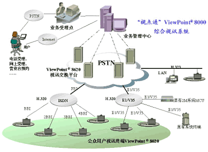 2000年初,通過對業(yè)務(wù)市場的科學(xué)調(diào)查和充分論證,決定采用'視點通'ViewPoint8000著手開展國內(nèi)首例公眾視訊運營網(wǎng)絡(luò)的試驗,以促進現(xiàn)有網(wǎng)絡(luò)的增值和ISDN業(yè)務(wù)推廣。