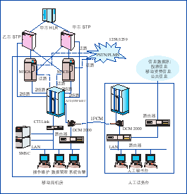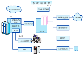 ACD和G/IW MSC采用華為公司的C&C08_Q智能交換機(jī)做為交換與七號(hào)信令的接入設(shè)備; 短消息調(diào)度中心SMSC,處理短消息的提交、存儲(chǔ)、下發(fā)、定時(shí)重發(fā)等; 呼叫處理服務(wù)器CCS,是人工/自動(dòng)秘書(shū)臺(tái)的話務(wù)呼叫控制部件; | ![]() |