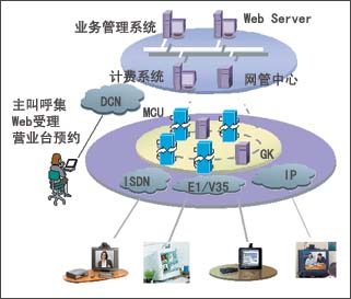 運營支撐層與視訊交換層可以兼容各個視訊終端生產(chǎn)廠家提供的滿足標準的終端,在視訊實現(xiàn)層為電信運營商的客戶提供多種方便的預(yù)約手段,并推出“主叫呼集”功能,使用戶能夠方便地自主召集各種視訊業(yè)務(wù)!耙豢ǘ嗵枴狈奖阌脩舾顿M、使用;全面的級連MCU主席控制能力使用戶能靈活操縱視訊業(yè)務(wù)的進行!爸鹘泻艏、“一卡多號”等功能的提供,使復(fù)雜的視訊業(yè)務(wù)真正成為電信運營商滿足大客戶、適應(yīng)電信市場發(fā)展的“傻瓜化”業(yè)務(wù)。
