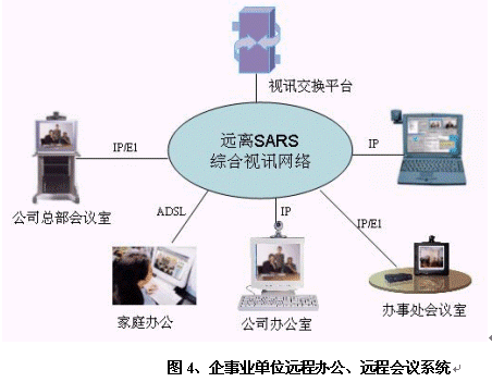 非典型肺炎不但對國家的經(jīng)濟造成了重大的損失,而且使得全社會對"非典"噤若寒蟬,大家對出差甚至外出都異常緊張。華為公司提供為個人家庭辦公、探親訪友的遠程多媒體通信解決方案,大家在家里即可通過網(wǎng)絡和親朋好友"面對面"交流、在家中辦公。減少外出、遠離人員眾多地區(qū),有效預防非典。對于有條件的用戶群可以推薦在現(xiàn)有寬帶線路或新增寬帶線路上購買軟件,即可實現(xiàn)親朋好友間的個人視頻通信;對于暫不具備寬帶條件的群體,如學生等,可以考慮在重點營業(yè)廳設立專門會議室或者視訊公話亭等,提供預約視頻服務,滿足其溝通的需求。