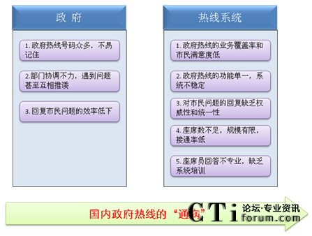 深圳市原有政府熱線所反映的問題并非孤立,由于時代和技術的局限性,國內其它的一些政府熱線也同樣面臨著諸多問題,具體如下: