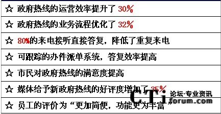 在我們的采訪中,深圳市政府認為,建設法治政府、廉潔政府、效率政府、有限政府、陽光政府和責任政府,前提是政府必須完成轉型。政府行政體制改革的最終目標是要達到行政權力規(guī)范,服務型的一個政府。因而,為市民提供專業(yè)權威和有效的政府熱線服務成為題中之意。通過深圳市12345政府熱線的成功應用,我們可以體會到呼叫中心應用于政府及公用事業(yè)部門后,受益的不僅是千百萬公眾,更重要的是加速了在社會急劇變革時代政府職能的現代化轉型。