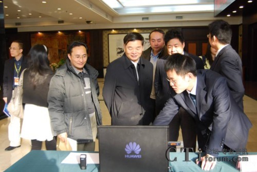 圖:楊學(xué)山部長(中間)等人視察華為的數(shù)字化城市管理信息系統(tǒng)