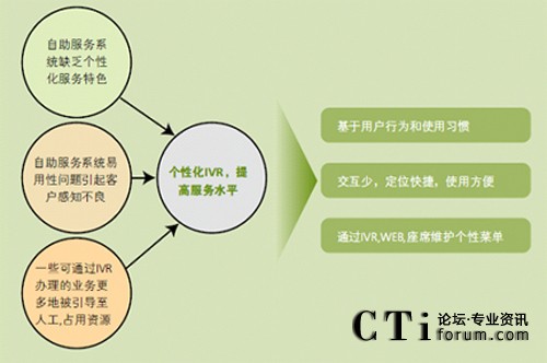 最終用戶可以提取常用業(yè)務(wù)定制自己的IVR菜單,減少語音提示和操作步驟,獲取服務(wù)更為準(zhǔn)確快捷,提升了業(yè)務(wù)受理效率,降低了對系統(tǒng)的占用時間。自動業(yè)務(wù)流程隨著最終用戶對受理業(yè)務(wù)需求的變化,運行效率也會隨之變化,系統(tǒng)將對自動業(yè)務(wù)流程的所有節(jié)點進(jìn)行跟蹤分析,根據(jù)效率最大化原則對業(yè)務(wù)節(jié)點進(jìn)行排序和調(diào)整。這些細(xì)節(jié)的改進(jìn),可以最大限度地降低每次交互占用的時間,提升了客戶滿意度,降低了交互成本。